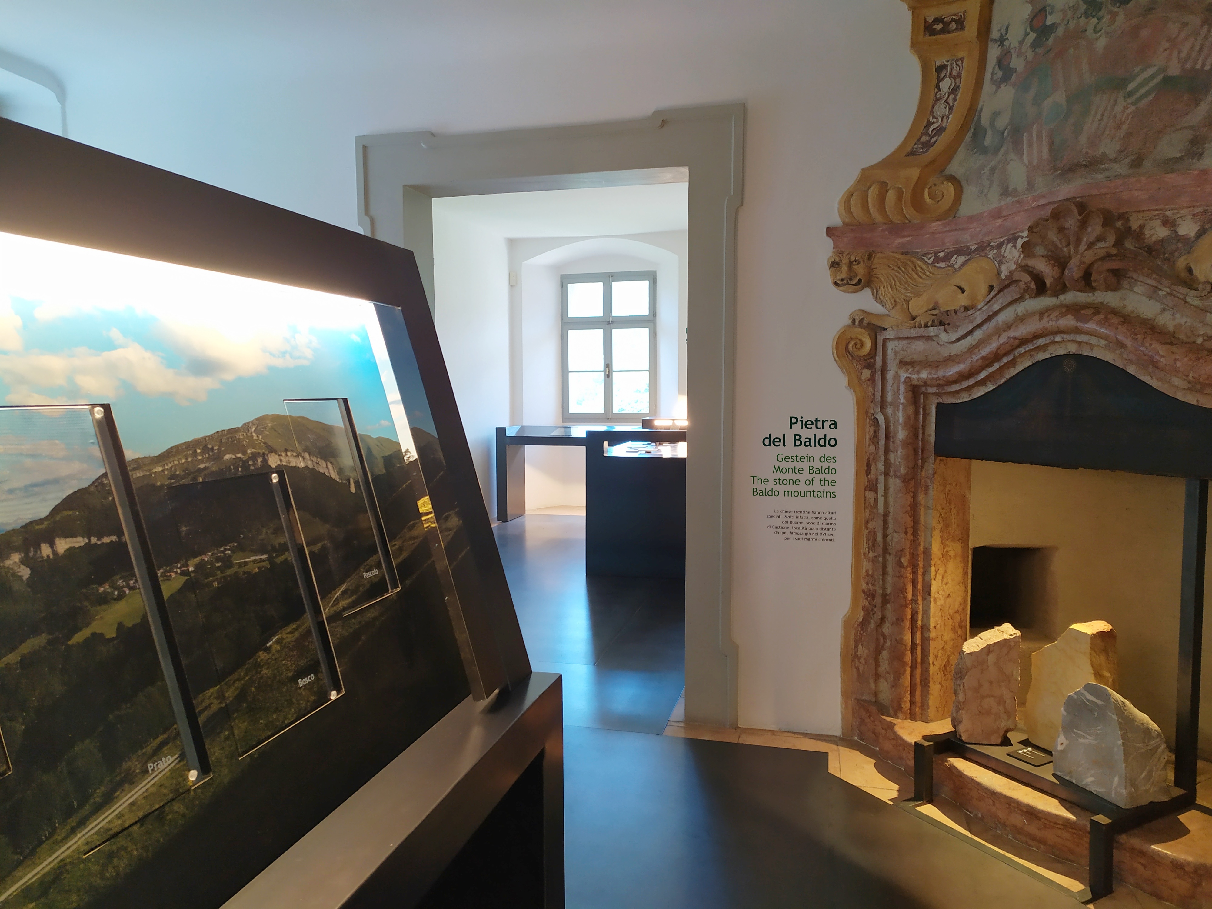 L'allestimento della Casa si costituisce idealmente come un grande "cannocchiale" che porta simbolicamente la dimensione "urbana" (rappresentata dalla piazza sulla quale affaccia il palazzo) attraverso l'edificio e le tre sale in infilata che ne costituiscono l'ossatura principale - al cospetto del paesaggio, visibile dall'ultima sala, colto in una delle sue immagini più evocative e identitarie (Corna Piana e Altissimo). Allo stesso modo, nel movimento contrario, il Parco entra idealmente nelle sale e "conforma" le strutture di allestimento.