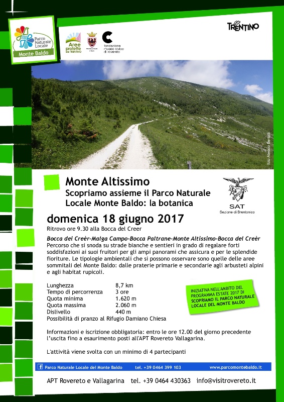 La partecipazione all'escursione è gratuita. L'iscrizione è obbligatoria entro le ore 12 del giorno 17 giugno 2017, fino ad esaurimento posti, all'ApT Rovereto e Vallagarina, indicando se si desidera pranzare in Rifugio.