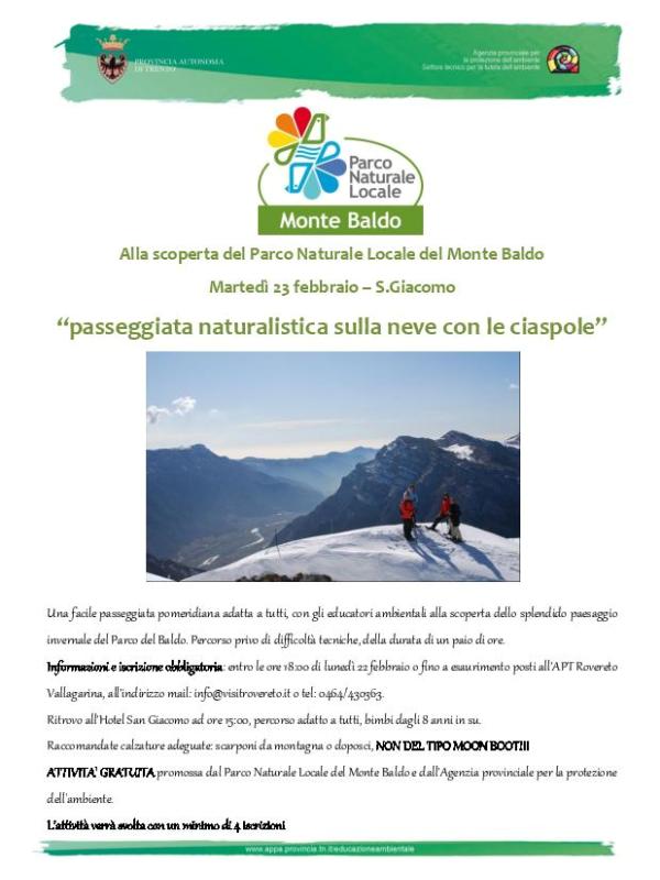 Passeggiata naturalistica sulla neve con le ciaspole, alla scoperta del Parco Naturale Locale del Monte Baldo